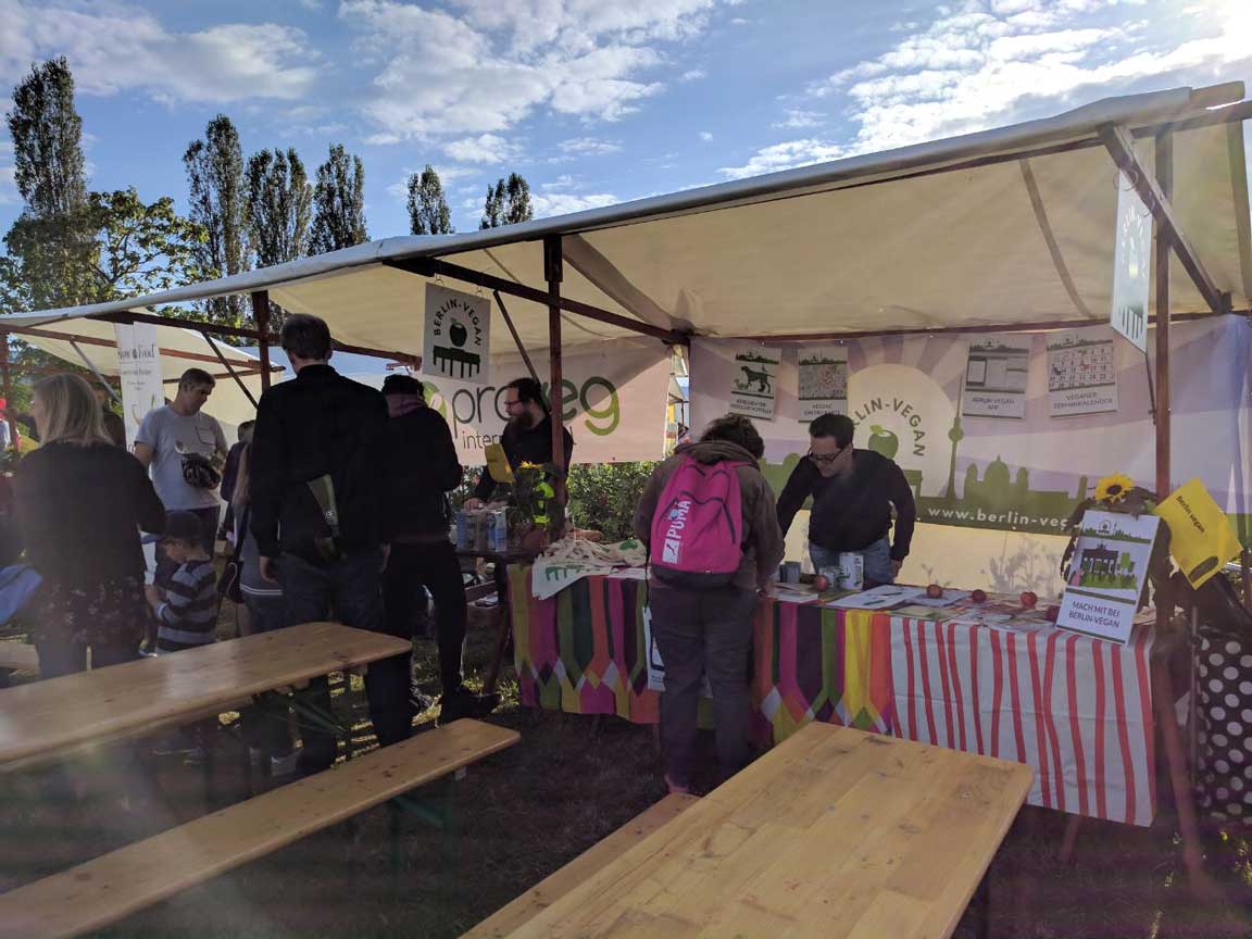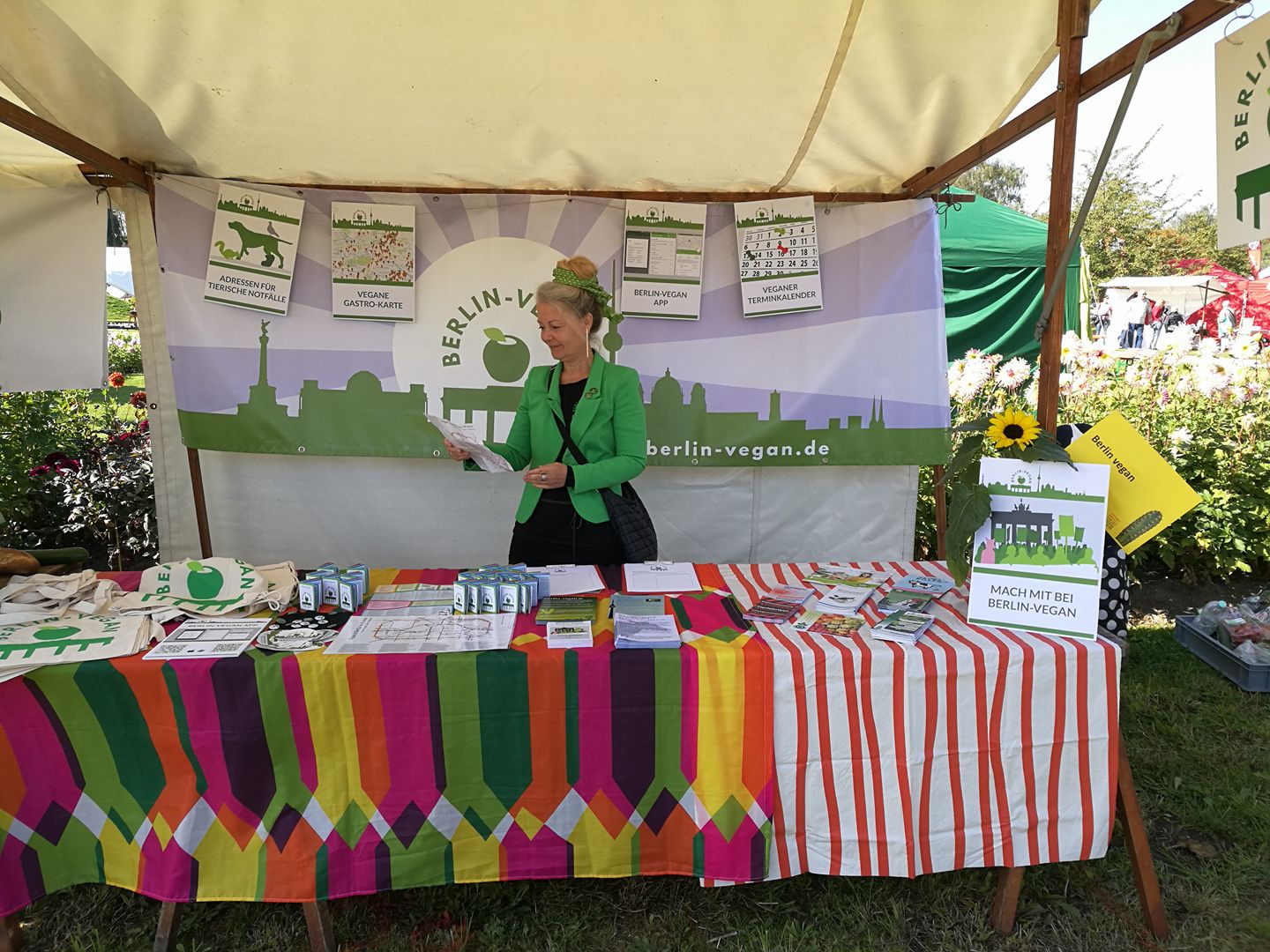 Für uns von Berlin-Vegan war es das zweite Mal beim Potsdamer Umweltfest. Zwischen den Ständen von ProVeg, Albert-Schweizer-Stiftung und BUND, haben wir uns in guter Nachbarschaft befunden. Dass wir eine auf Berlin bezogene regionale Initiative sind, hat da nicht gestört. Viele BesucherInnen sind aufgrund einer beruflichen Tätigkeit oder auch einfach in ihrer Freizeit häufig in Berlin. Dementsprechend kam unser Hosentaschen-Flyer mit einer Übersicht aller veganen Restaurants, Cafés usw. in Berlin gut an und wurde reichlich mitgenommen. Einige schauten gleich vor Ort mal nach, wo sie essen gehen können, wenn sie demnächst die/den FreundIn in Berlin besuchen.